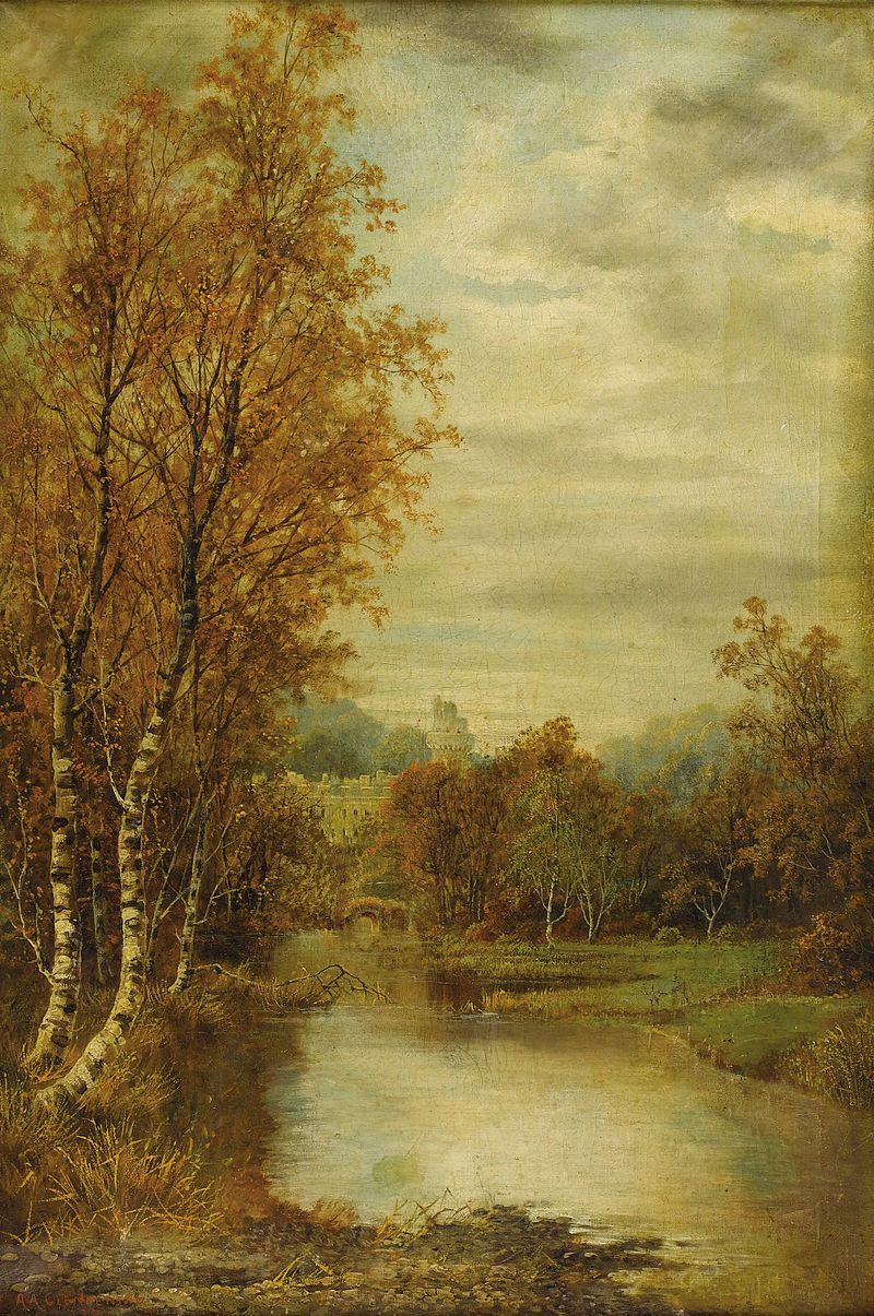 Autumn_Landscape_With_Pond_And_Castle_Tower-Alfred_Glendening-1869