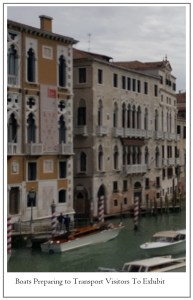After touring the Palazzo, visitors were invited to the Berengo Exhibition Space on Murano for a separate, related Glasstress exhibit. Above is a view of the Palazzo and a boat preparing to transport visitors to the exhibit. Here again, the overall experience of boating to Murano and entering a glass factory enhances the enjoyment of the displayed art.
