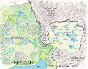 Draw a quick, simple map, such as the sample map to the right, if your characters are traveling in a fantasy world—it doesn’t have to be fancy. This way your place names and directions won’t inadvertently shift as the book progresses.- Make a list of character names and place names, and any words that are unique to your world and your story. This will be your reference manual for this novel and will keep the spelling from evolving as you get further into the story.