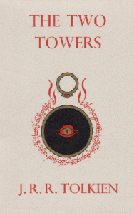 The Two Towers, by J.R.R. Tolkien, first edition cover, Publisher George Allen & Unwin, © 11 November 1954, Fair Use.