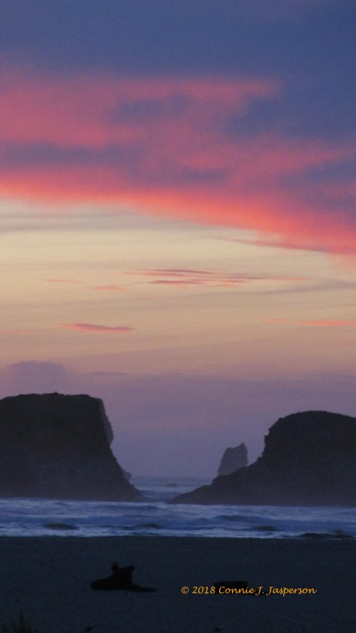 Sunset at Haystack, 19 August 2020 © 2020 by Connie J. Jasperson, All Rights Reserved (author’s own work).
