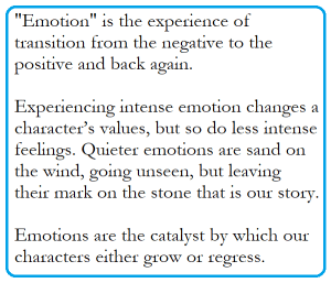 I’ve pointed out many times that conflict is what keeps the protagonist from achieving their goals. Large emotions are easy to write. But frequently, in real life, our smaller joys have a longer-lasting impact, and the memory of these can be the impetus that keeps the soldier fighting during the darkest hours.