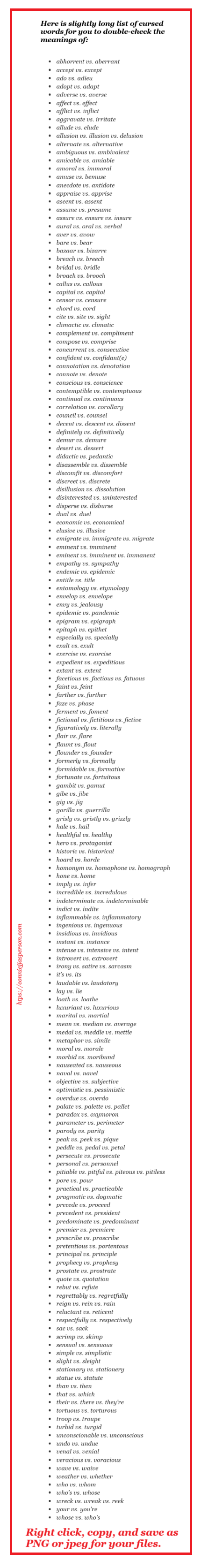 Then, after I had all the synonyms, I looked for the antonyms, the opposites.
