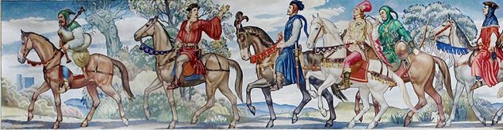 Detail of mural by Ezra Winter illustrating the characters in the Canterbury Tales by Geoffrey Chaucer