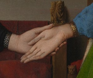Nothing looks real except the dragon which is nightmare come to life. I love the hyper-heroic way Uccello portrayed horses. The people are pallid, with no personality to their features. The dragon and the horse are alive, as if the scene is about them only. All the passion of the moment converges in the dragon and the horse.