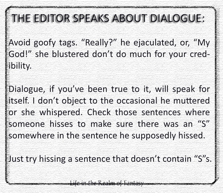 I’ve mentioned before that I prefer simple attributions such as said, replied, and answered because they are not as likely to stop the reader’s eye.