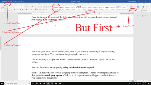 Step 1: On the Home tab, look in the group labeled ‘Paragraph.’ On the lower right-hand side of that group is a small grey square. Click on it. A pop-out menu will appear, and this is where you format your paragraphs.