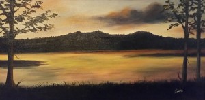 Black Lake Sunset, by Florence Lemke, 1973. Painted by the author’s aunt, image reproduced from the private collection of Connie J. Jasperson. © 2018 All Rights Reserved. Printed by permission.