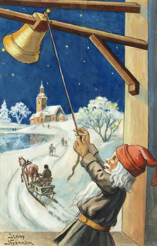 Merry Christmas from my home to yours! The above image is a quintessential Swedish Christmas card, illustrated by Jenny Nystrom, (1854 – 1946).