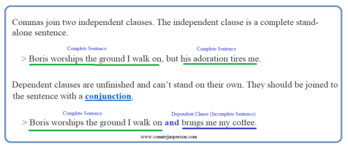 For instance, Microsoft’s editor app sometimes tells us to use a comma to join two independent clauses when they don’t relate to each other. Microsoft is wrong. That creates a comma splice. The comma splice is a dead giveaway that either the author has skimped on editing their work or they’re not well-versed in grammar. (See Monday’s post, Self-editing part 1 – seven basic rules of punctuation, for a better explanation of comma splices.)