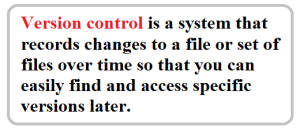 Version control is a system that enables us to maintain an accurate history of changes to a file (or set of files) over time. We can return to specific versions as needed later, so nothing has been lost.